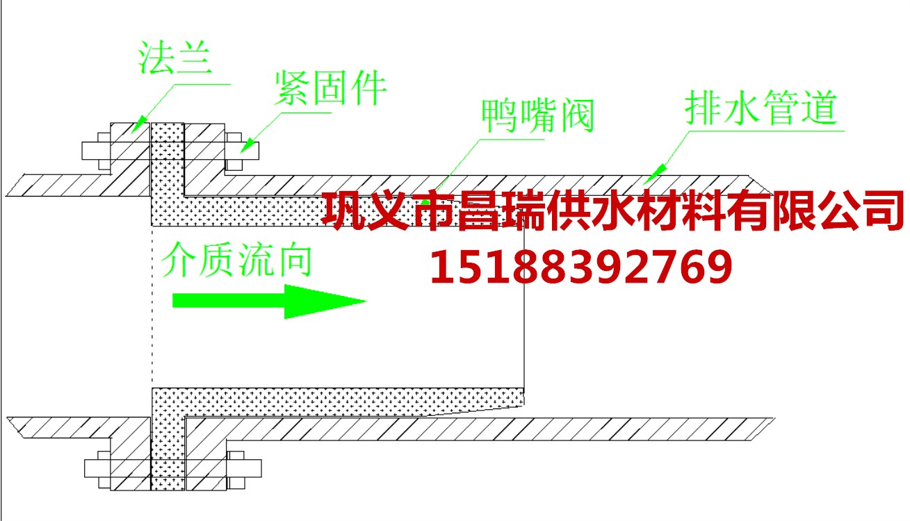 鞏義市昌瑞供水材料有限公司為您提供技術資訊:內置式鴨嘴閥是我公司生產(chǎn)的安裝于排水管道系統(tǒng)中起到排污止回作用的設備裝置,產(chǎn)品按照連接方式以及結構外形劃分為:雙法蘭內置式鴨嘴閥、單法蘭內置式鴨嘴閥、內置卡箍式鴨嘴閥等,雙法蘭內置式鴨嘴閥是由橡膠鴨嘴閥閥體與金屬套筒組合而成的,金屬套筒兩端有兩片法蘭固定,安裝于排水管道中間連接緊固件即可正常使用;單法蘭內置式鴨嘴閥有兩種:一種是鴨嘴閥閥體與金屬套筒組合而成的,金屬套筒一端法蘭連接一端焊接在排水管道上;另一種是與法蘭式鴨嘴閥外觀相似,不過單法蘭內置式鴨嘴閥其鴨嘴閥“鴨嘴”直徑<公稱通徑,安裝于排水管道內部,兩端與排水管道上的金屬法蘭進行緊固件固定;內置卡箍式鴨嘴閥是由橡膠鴨嘴閥閥體與金屬卡箍組合而成的,其金屬卡箍一般置于鴨嘴閥閥體內部,安裝省時省力省空間,是排水管道排污止回、防倒灌的優(yōu)質選擇產(chǎn)品!